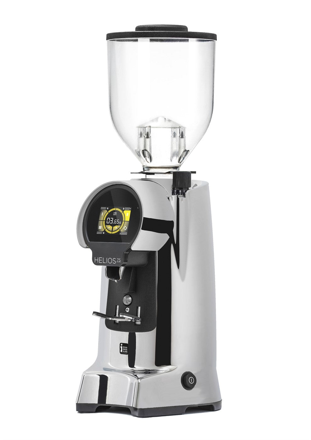 Ausgestattet mit 75 mm flachen Mahlscheiben aus gehärtetem Stahl erreicht die Helios 75 eine außergewöhnliche Mahlgeschwindigkeit von 4,9 bis 5,9 g pro Sekunde. Das „High-Speed“-Mahlen ermöglicht eine schnelle Zubereitung auch bei hohem Gästeaufkommen – ohne Kompromisse bei der Mahlgutqualität.
